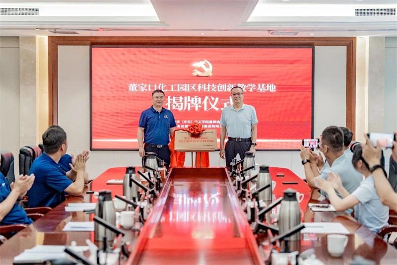 雙方共同為董家口化工園區(qū)科研教學(xué)基地揭牌,標(biāo)志著校企合作進(jìn)入黨建引領(lǐng)、資源共享、協(xié)同發(fā)展的新階段。
